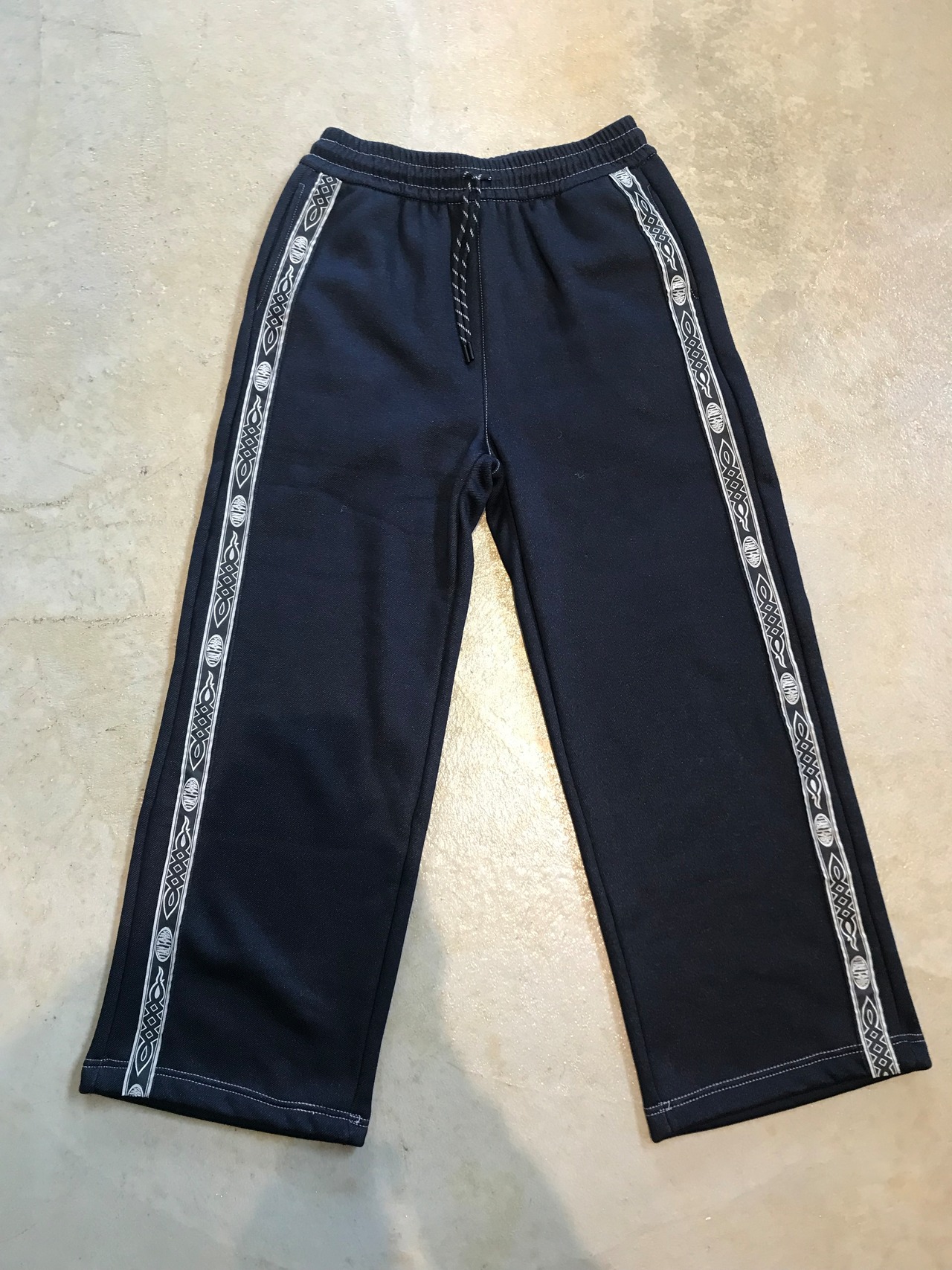 裏起毛トライバル柄オーバーサイズのトラックパンツ入荷致します。今後再入荷、製作の予定が無いとの事で、ネイビー、ブラックのデッドストックの2枚のみとなります。細かいサイズ感、シルエットなど気になる方はDMにてお問い合わせください。デッドストックシリーズ人気なので、お早目の購入をオススメ致します。かなりの数の数のデッドストックコレクションを拝見させて頂きましたが、帰りの飛行機が寒いから作った革じゃんとか、お父様の趣味で何枚も作ったパンツとか。仕入れても、店頭出る前に身内で売れ切れちゃう。2枚しか無いです。