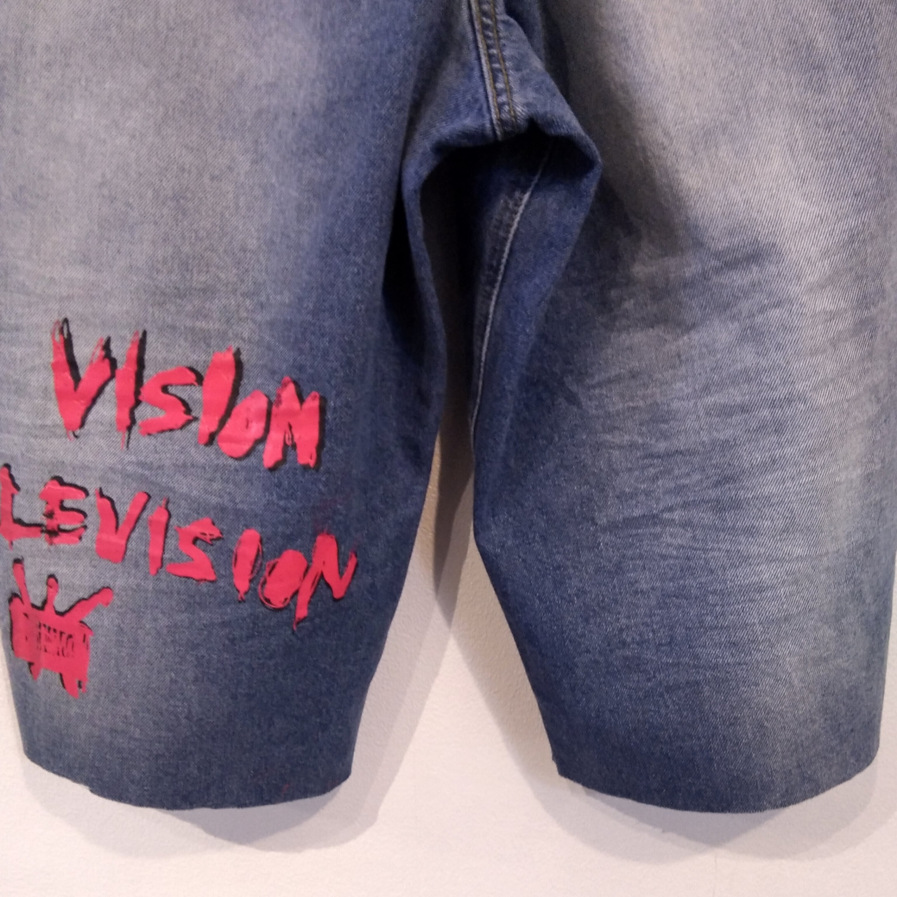 オーバーサイズのデニムパンツが八分丈にカットされた、股上深めのパンツ。